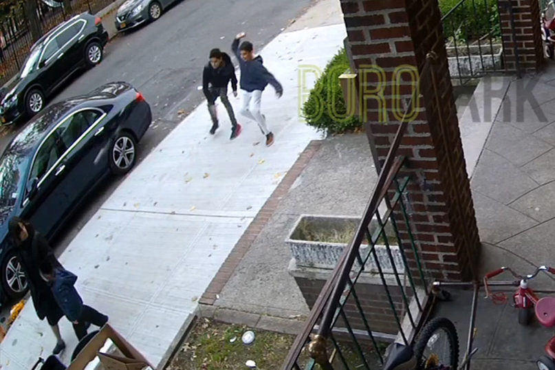 Main Photo: Security footage of suspects allegedly egging victims in Brooklyn. Boropark24